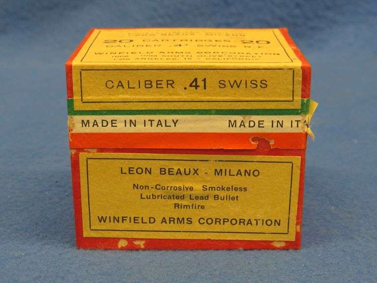LOT 158 - Unopened box of Italian made Swiss .41 caliber rifle rounds. 20 total rounds.