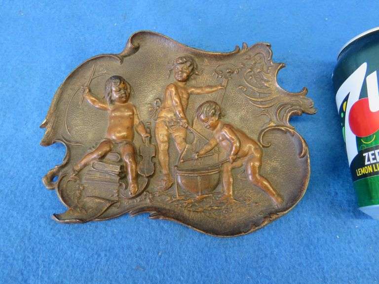 LOT 93 - Cast tray or wall hanging depicting cherubs at play