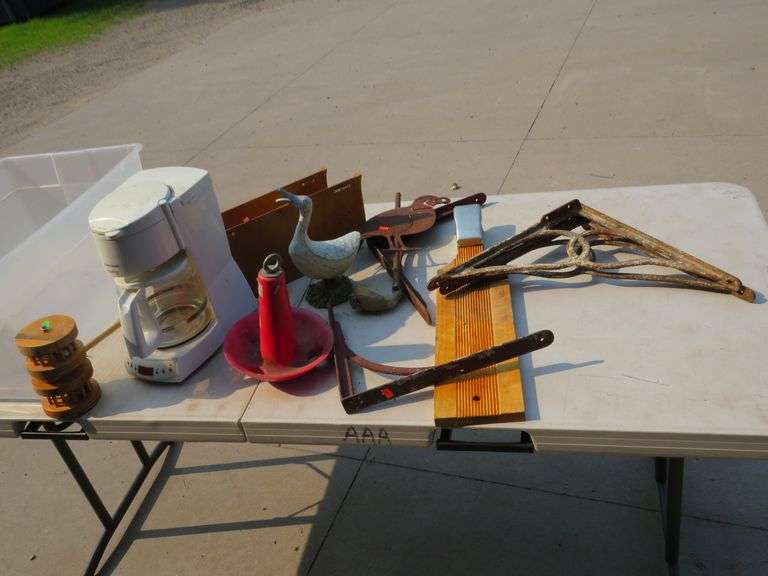 Mushroom anchor, small Tonka truck, vintage toddler push toy, and more