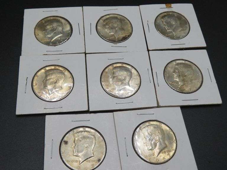 Eight Kennedy half dollars from the 40% silver period 1965-1970