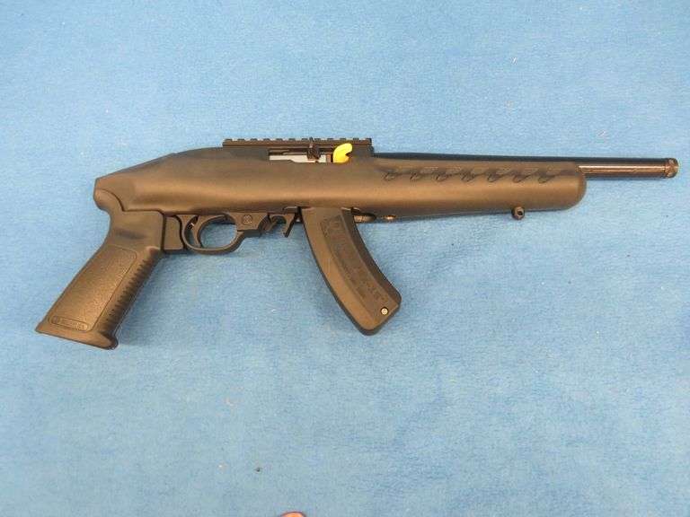 NIB Ruger 22 Charger semi-auto pistol. Ser. #493-00235. Shoots 22 LR. Includes magazine, manual, lock, bipod, and original box. This item is new in the box and seller reports that it has not been fired. A Handgun or purchase permit is required for this gun.