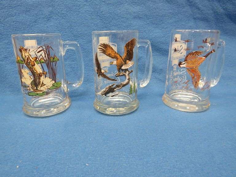One dozen Schmidt Collector Series beer glasses. 6 Northern Pike, 5 Geese, and 1 eagle.