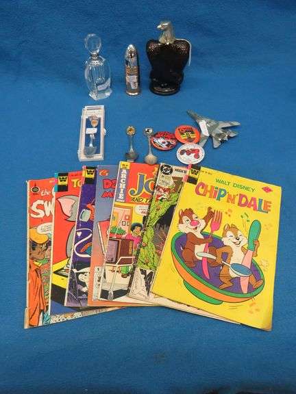 LOT 32 - Comic books, perfume containers, pinbacks, and more