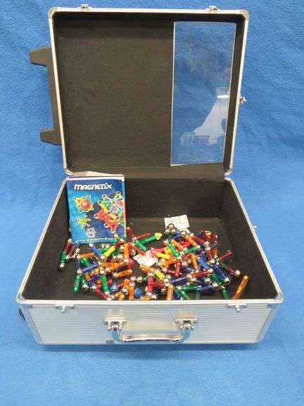 Magnetix magnet building components. Includes rolling aluminum case.