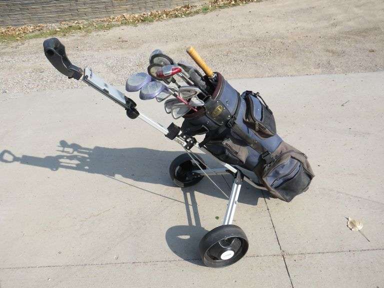 Ladies' RH golf clubs. Lady Viper irons 3-PW minus the 6, 3 metal woods, utility club, putter, ball retriever, and a pull cart