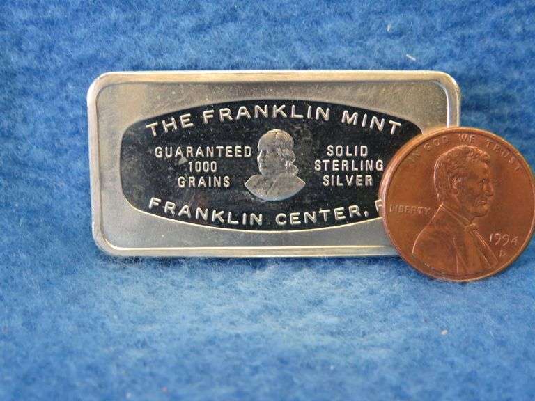 Franklin Mint Bank-marked sterling silver ingot. 65.4 grams.