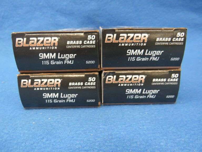 Blazer 9mm luger. 115-grain. Four full boxes of 50 each. 200 total rounds.