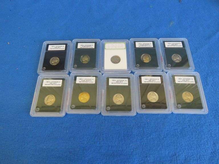 - Six 1968 S Jefferson nickels, IMB certified Gem MS70