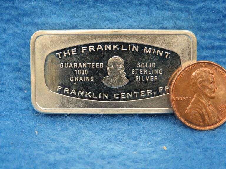 Franklin Mint Bank-marked sterling silver ingot. 65.5 grams.