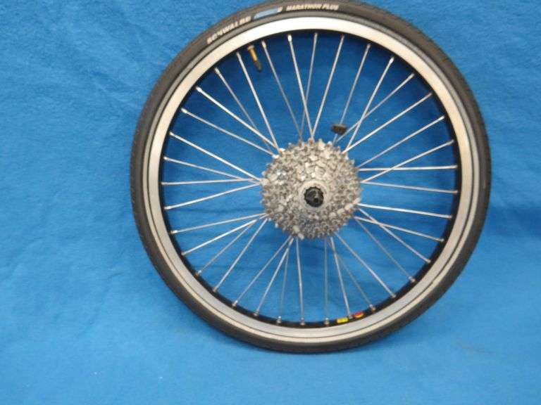 LOT 380 - Shimano Deore 9-sprocket bicycle wheel on a Sun CR18rim