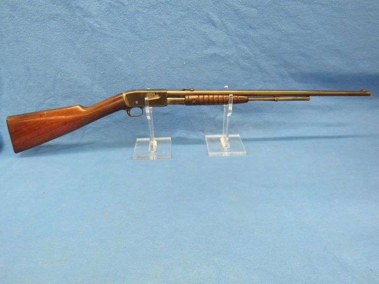 Remington pre-Model 12 .22 pump-action rifle. Ser. #166918. Shoots S, L, and LR. This gun has been re-sleeved. Includes a case.
