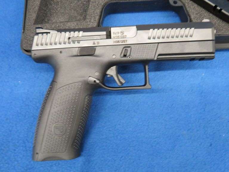CZ-USA P-10 9mm semi-auto pistol. S/N: H051257. Two magazines, extra back straps, and original case