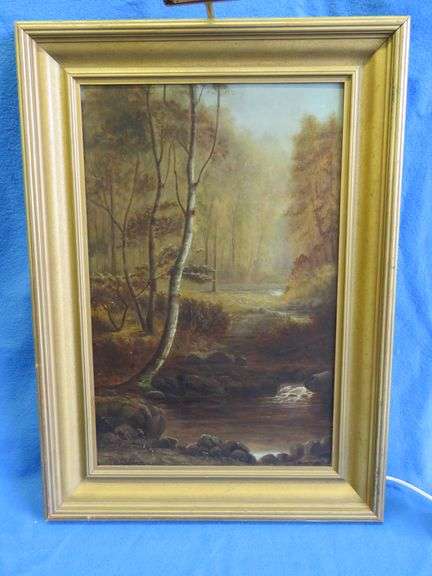 Framed 20" x 28 1/2" picture with a lamp attached (needs a bulb).