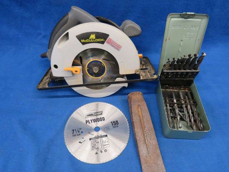 LOT 206 - McCulloch circular saw, drill bits, and more