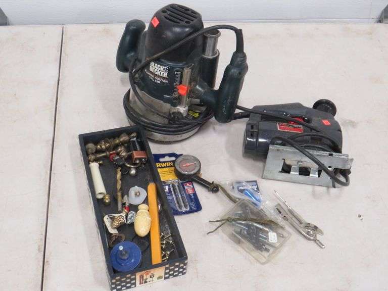 Black and Decker 3 3/4" router, Skil jigsaw, hardware, and more