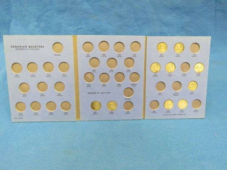 Canadian Quarter album with ten 80% silver quarters from 1937 through 1951