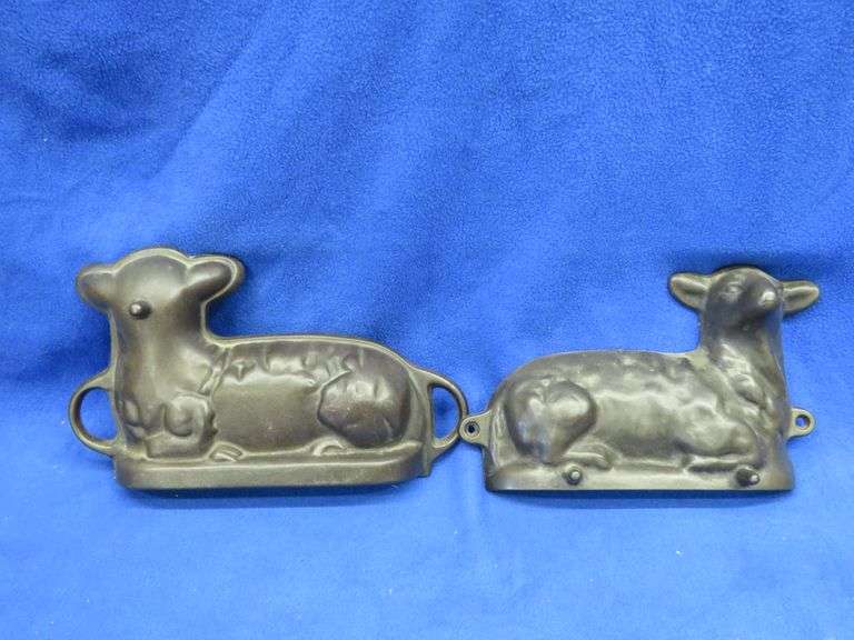 LOT 309 - Vintage two-piece cast iron sheep cake or bread mold