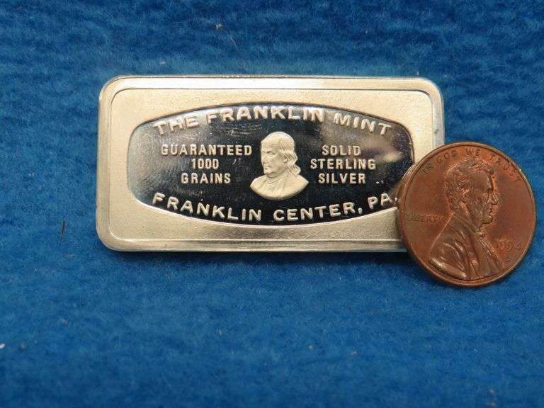 Franklin Mint Bank-marked sterling silver ingot. 65.2 grams.