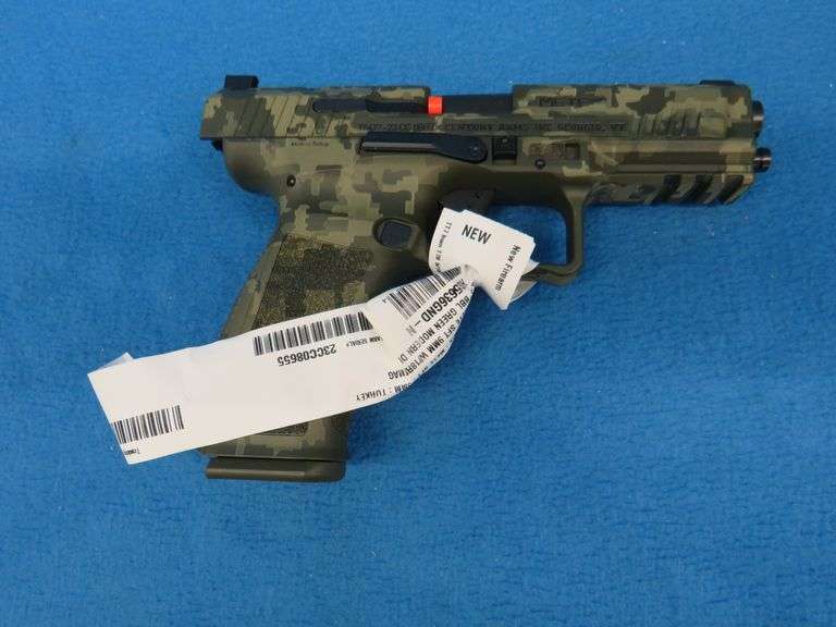 New in the factory case Canik Mete SFT 9mm semi-auto pistol. Ser. #23CC08655. Includes two magazines, speed loader, cleaning accessories, manual, micro pistol shaped tool kit, paddle holster, and more.