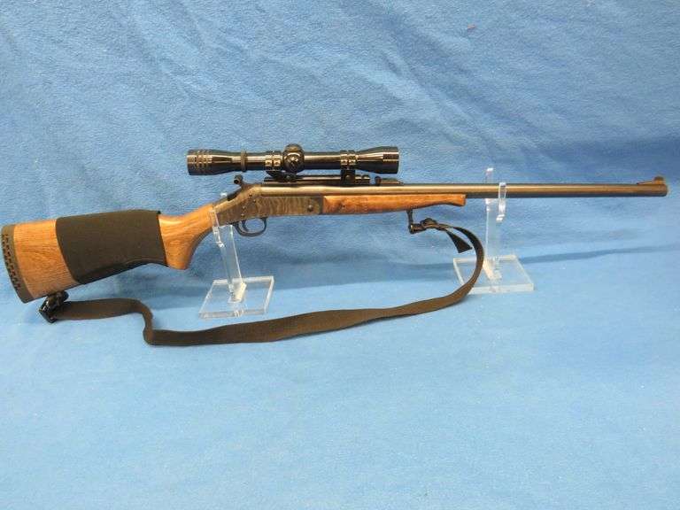 New England Firearms Pardner Tracker 20-gauge single shot shotgun. Ser. #NT 233931. Includes 24" rifled barrel, sling, ammunition sleeve, and a 4X Redfield scope.