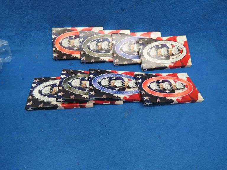 Four 2001 and four 2002 state quarter sets. Each has 5 quarters. 40 total.