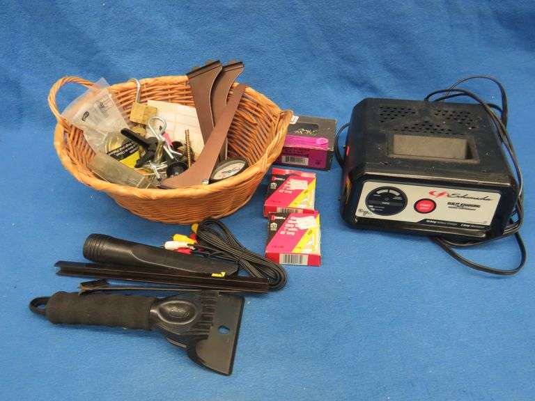 Schumacher 10/2 amp battery charger, hardware including fasteners, strap hinges, air hose kit, and more.